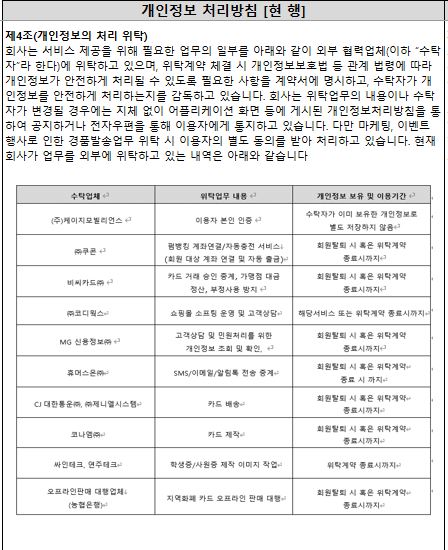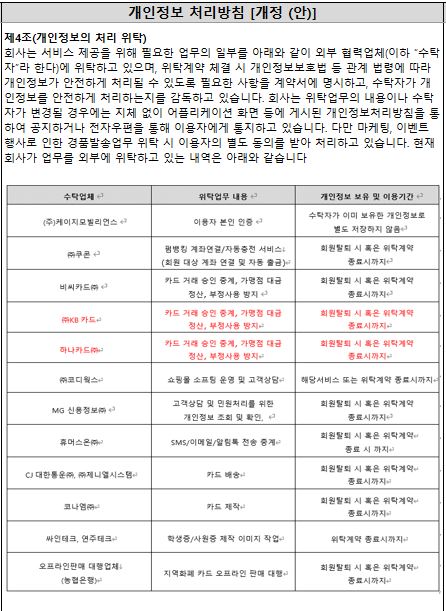 개인정보 처리방침의 내용을 일부 변경하게 되어 안내드립니다.
